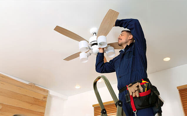 Professional adjustment and balancing of ceiling fans to eliminate wobbling and noise caused by coastal conditions, ensuring smooth, quiet operation year-round.